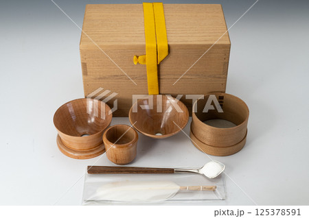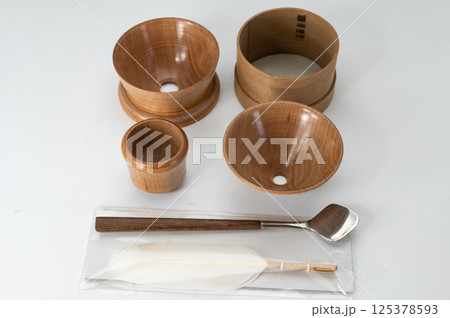 茶道具,工芸品, 利休形,桐木地,茶掃箱セット,木製茶合,重ね茶漏斗