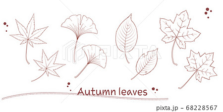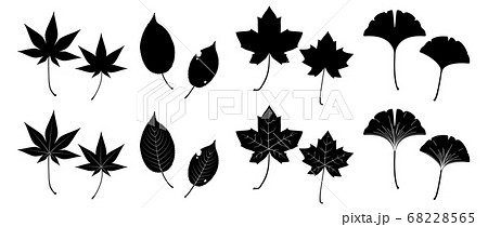 いろいろな秋の落ち葉のイラスト(モノクローム)