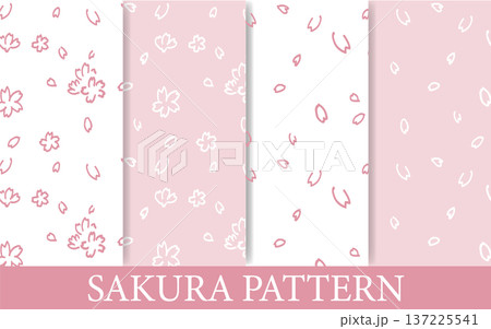ピンクの手書きの桜の花びらが舞うスウォッチパターンセット
