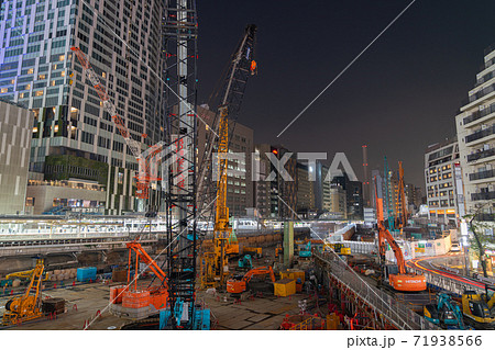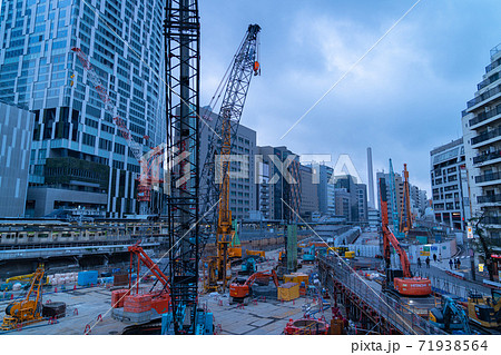 再開発 東急 桜ヶ丘 工事現場 重機 渋谷 午後 都心 東京 夜空 雲 鉄骨