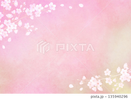 満開の桜と和紙の春イメージ背景 ソメイヨシノ