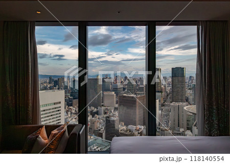 大阪駅西口直結のJPタワー大阪(KITTE大阪)にある、大阪ステーションホテルの綺麗な客室からの夜景
