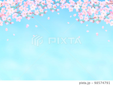 青空と桜の水彩タッチのベクターイラスト背景