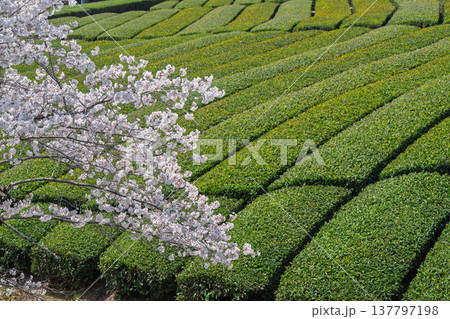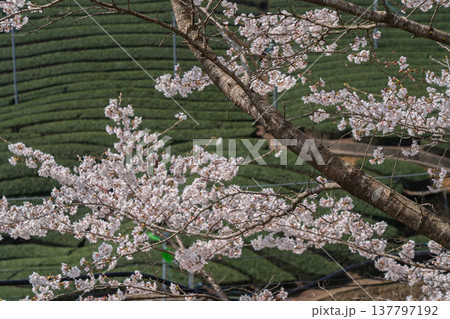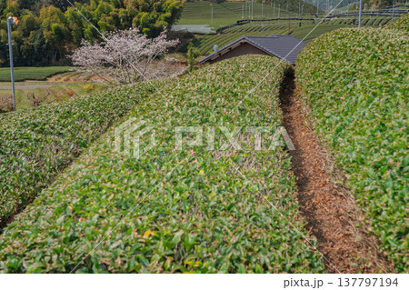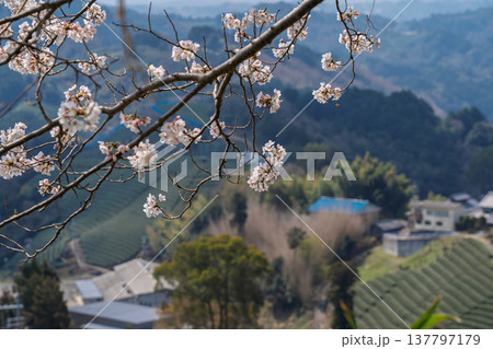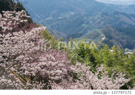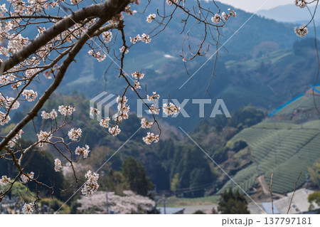 春爛漫の京都府相楽郡和束町の桜と茶畑撮影