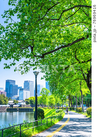 《東京都》丸の内オフィス街・新緑の桜田濠