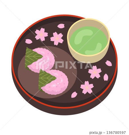 桜餅と抹茶の甘味セットイラスト