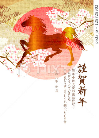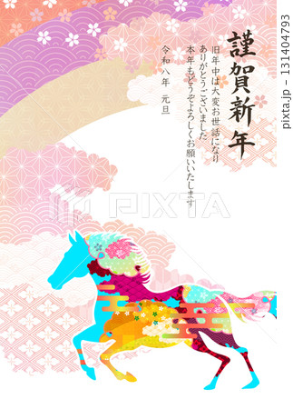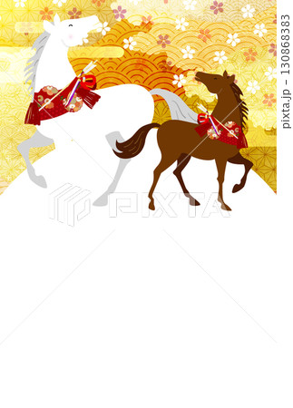 午 年賀状 白馬 背景