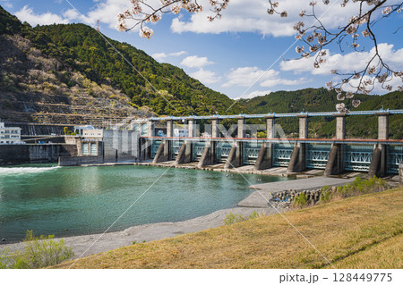 浜松市の船明ダムの桜並木の風景(静岡県)