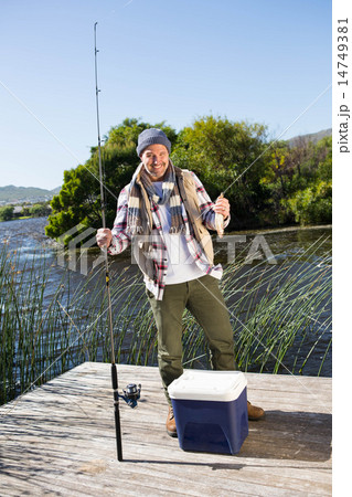 Mature man fishing from pier