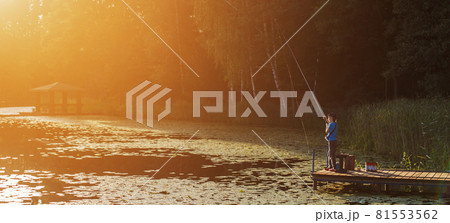 Fisherman with a fishing rod set 9