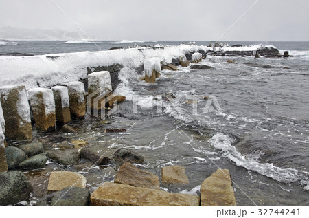 厳冬の松前・かつて北前船で賑わった桟橋跡