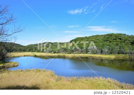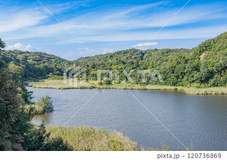 磐田市にある秋の桶ヶ谷沼の森林の風景(静岡県)