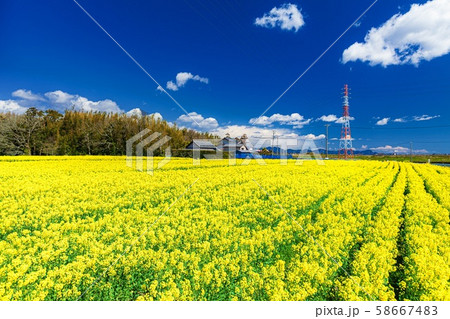静岡県磐田市岩井 菜の花と桶ヶ谷沼周辺の風景