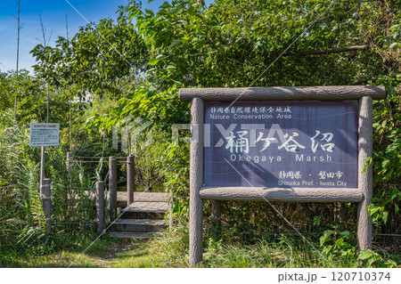 磐田市にある桶ヶ谷沼の看板の風景(静岡県)