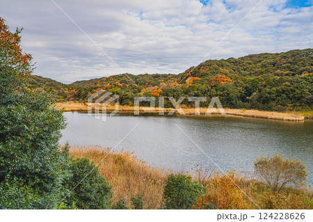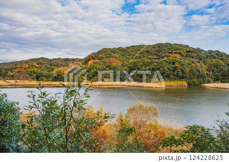 磐田市にある秋の桶ヶ谷沼の紅葉の風景(静岡県)