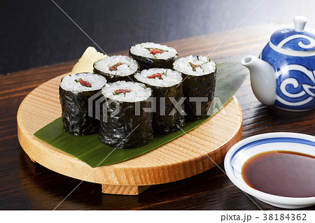 梅、紫蘇、山芋の海苔巻を白背景で撮影