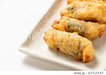 鶏肉ささみの梅しそ巻き揚げ。(白バック)