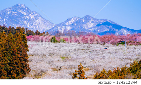 河津桜と白梅林と残雪の榛名山