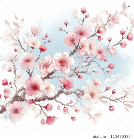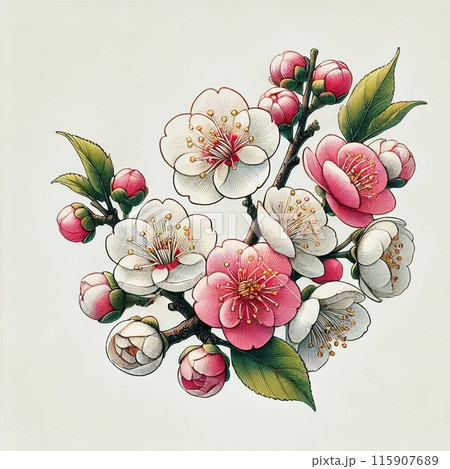 水彩で描いた梅の花のイラスト
