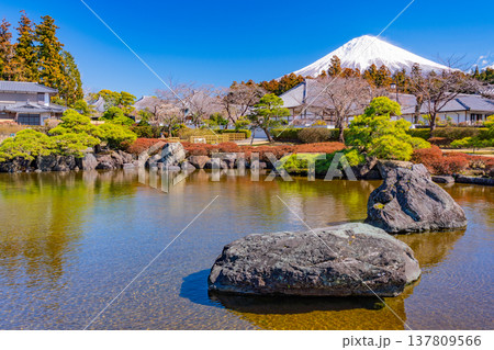 (静岡県)大石寺庭園の梅の花と富士山