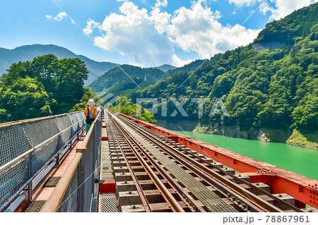 静岡県榛原郡川根本町にある大井川鐡道井川線の駅の奥大井湖上駅周辺の風景
