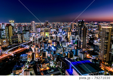 大阪の夜景風景 大阪市街地 阪神高速道路 イメージ素材