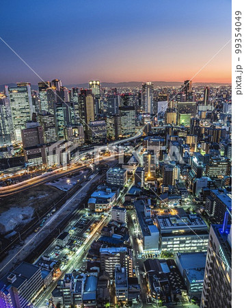 大阪の街の夜景、梅田スカイビルから見た眺め