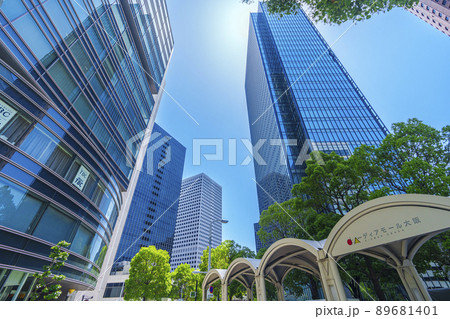梅田のビル群 朝 梅田DTタワー地下出入口付近からの風景