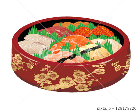 握り寿司(梅模様、赤桶)バラン付き