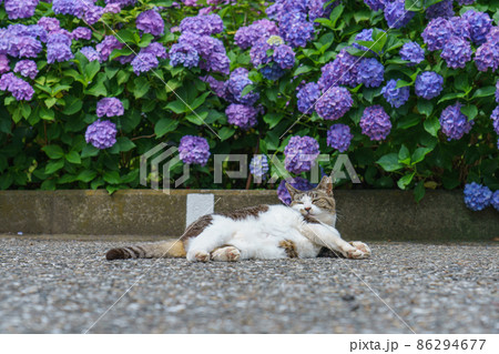 東京都 白山神社紫陽花とネコ