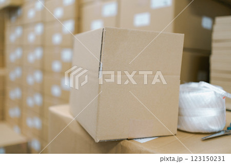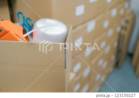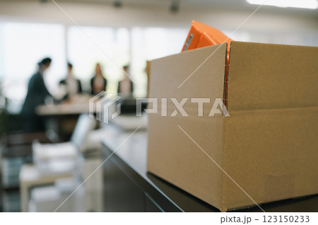 オフィスに置かれた梱包途中のダンボール