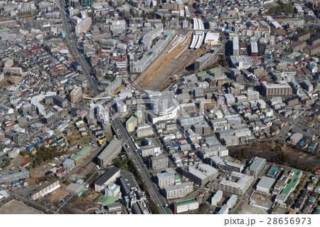 日本の川崎都市景観 東急電鉄 梶が谷駅前などを望む