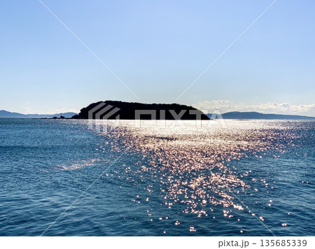 蒲郡市から見た梶島の風景(愛知県)