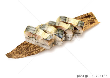 脂が乗って、程よい酸味と甘みを感じる、さばの棒寿司の写真