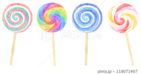 カラフルなぺろぺろキャンディのセット 水彩タッチ