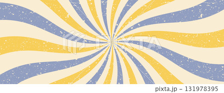 Vintage sunburst pattern, groovy spiral swirl. Psychedelic retro background with grunge texture. Abstract ray burst.