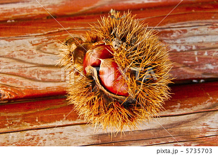 日の光の当たったいがを背景にした採れたての栗のクロースアップ