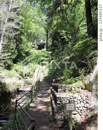 新緑とサクラ ヤマブキの花 春の風景 棚下不動付近の眺め
