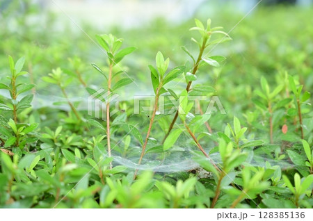 生き物 蜘蛛 コクサグモ、生垣などにたくさん目立つ棚網があるとこのクモのせいかもしれません