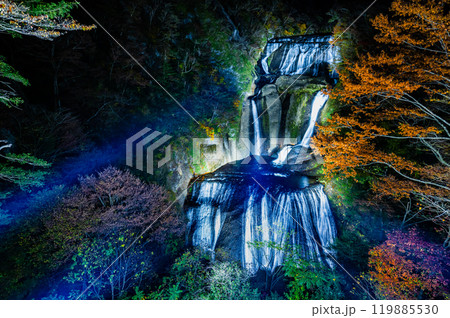 茨城 袋田の滝 秋の紅葉ライトアップ
