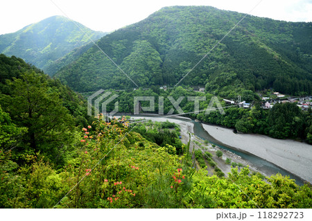 森山展望台から谷瀬の吊り橋を望む 【奈良県十津川村】