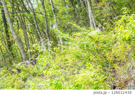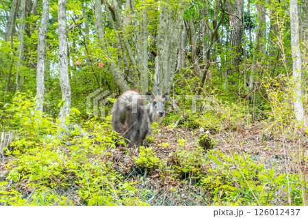 ニホンカモシカの親子 日本のみに生息する学術的に貴重な動物 絶滅危惧種 特別天然記念物