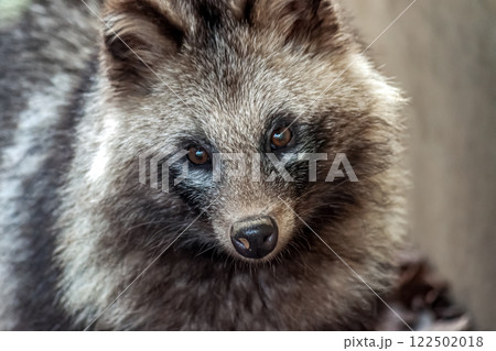 体色は灰褐色および茶褐色でイヌ科タヌキ属のタヌキの顔立ち