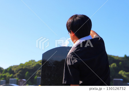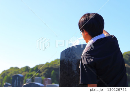 墓参り 掃除 少年