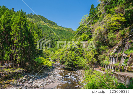夏の面河渓 空船橋と通行止めの遊歩道2 愛媛県上浮穴郡久万高原町