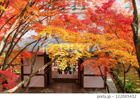 Fall leaf tunnel at entrance in Jojakkoji temple, Arashiyama, Kyoto