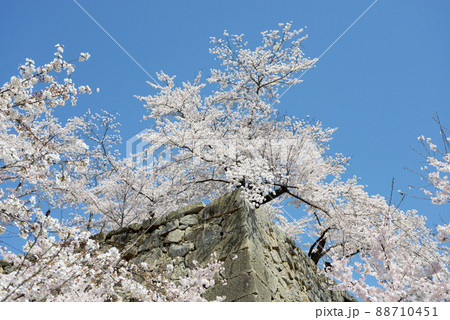 春の津山城 石垣と満開の桜 岡山県津山市山下