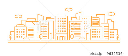 3色の線画のマンションやビルと戸建ての街 黒基調