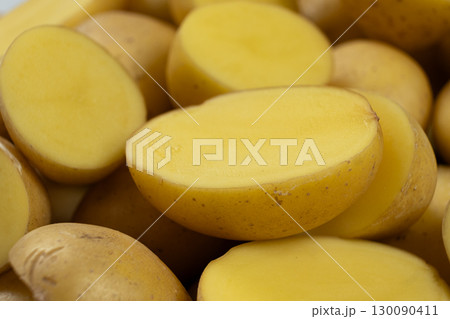 Halves of raw potatoes close-up. Fresh organic vegetables