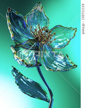 Exquisite Glass Flower with Intricate Details on a Bright Aquatic Background